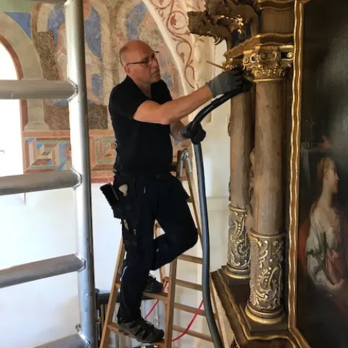 Bevaring Sjælland varetager konservering og restaurering af kirkeinventar som altertavler, prædikestole, epitafier og kirketekstiler. Afhængigt af opgavens omfang og karakter udføres arbejdet enten på stedet i kirken eller på vores værksted.